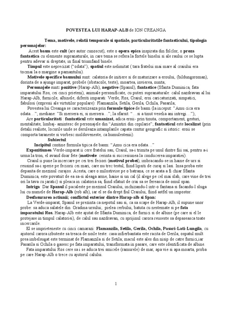 Doc Particularitatile Basmului Cult Povestea Lui Harap Alb Tema Si Viziunea Despre Lume De Ion Creanga Mădălina Bunea Academia Edu