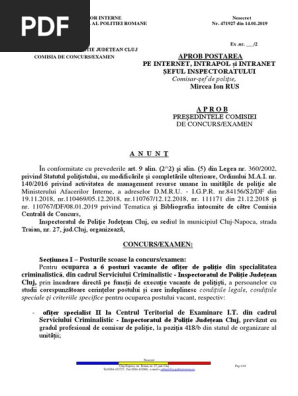3 Anunt Concurs Examen Incadrare Directa 6 Posturi Vacante De Ofițeri De Poliție La Serviciul Criminalistic I P J Cluj