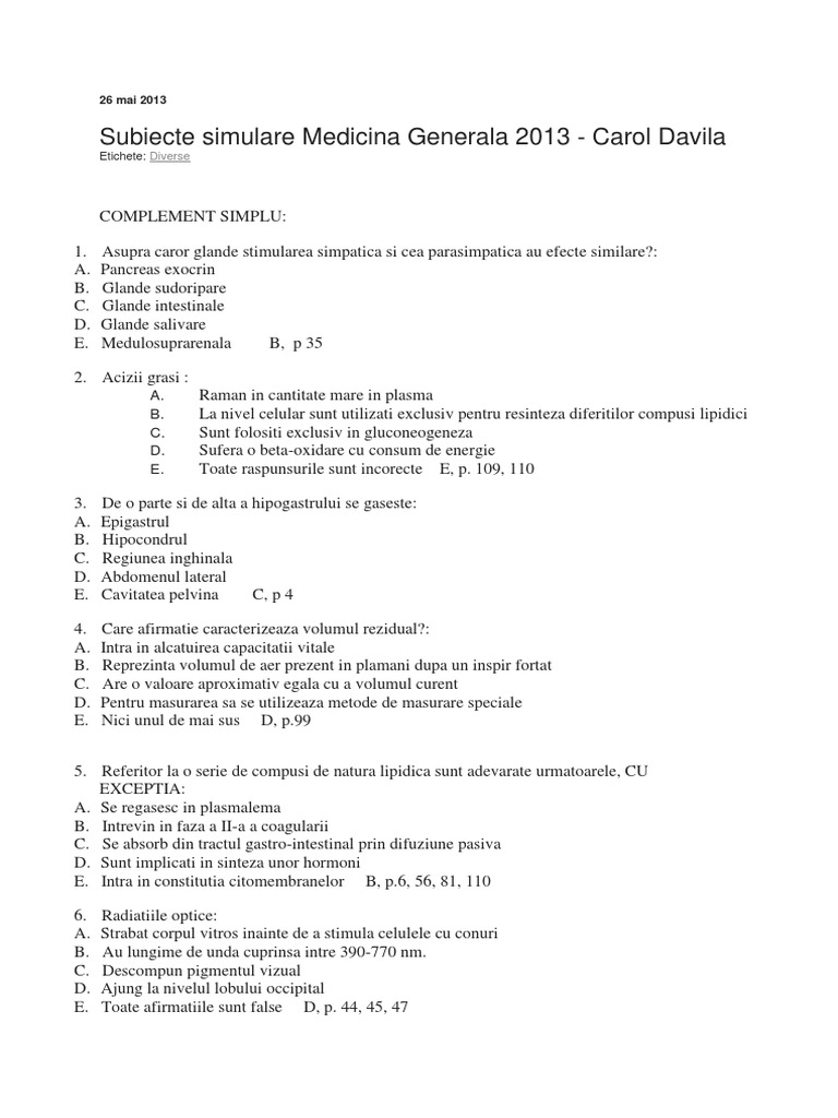Subiecte Simulare Mg Carol Davila 26 Mai 2013